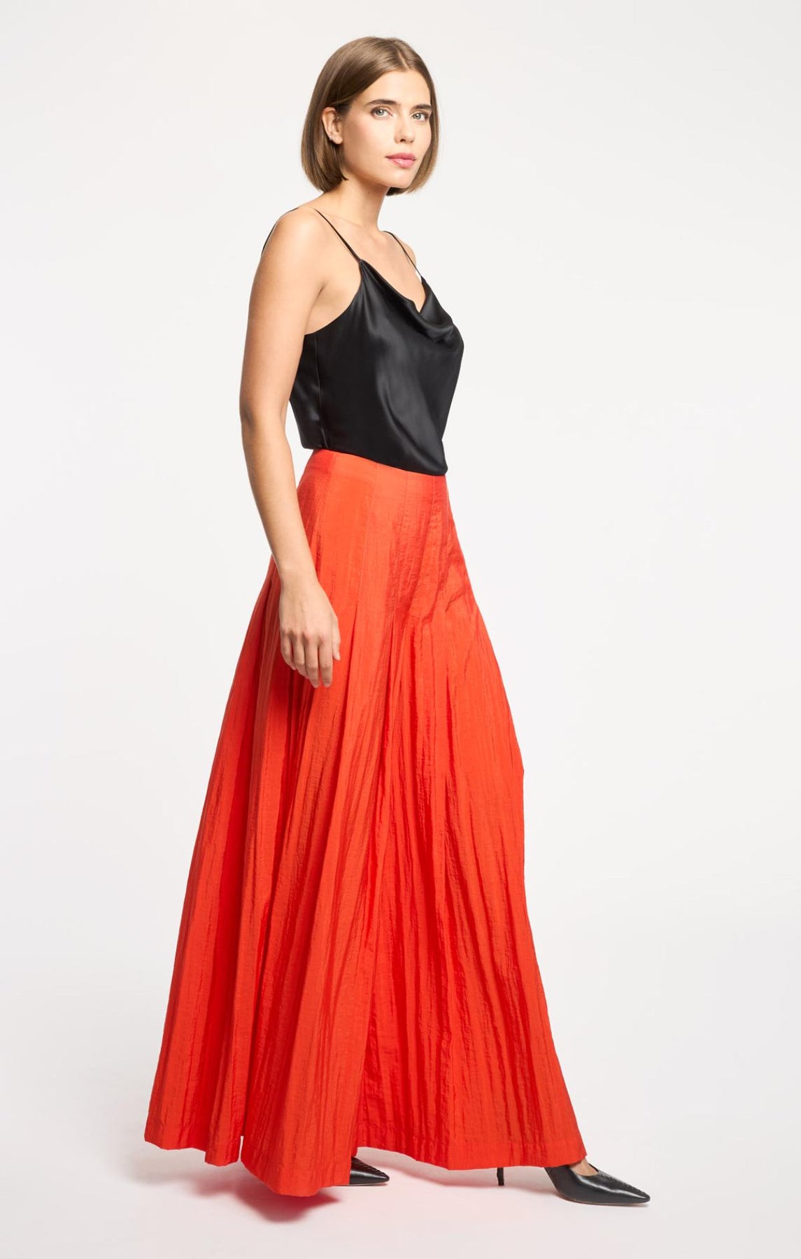 The Jagger Pant is a statement piece that turns heads with its vibrant color and relaxed wide-leg proportions. Loose pleats add dimension and movement, creating an effortlessly polished look.