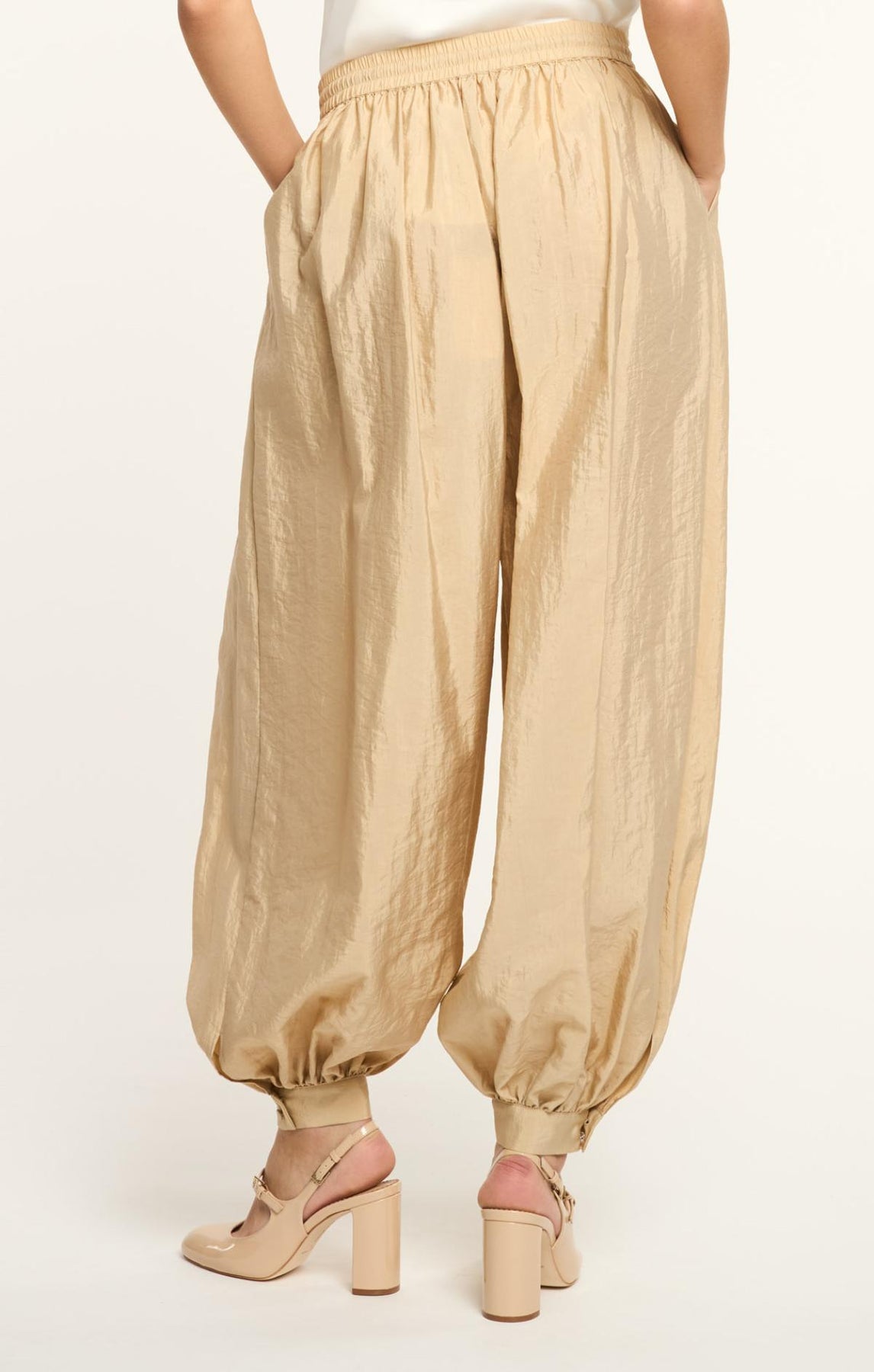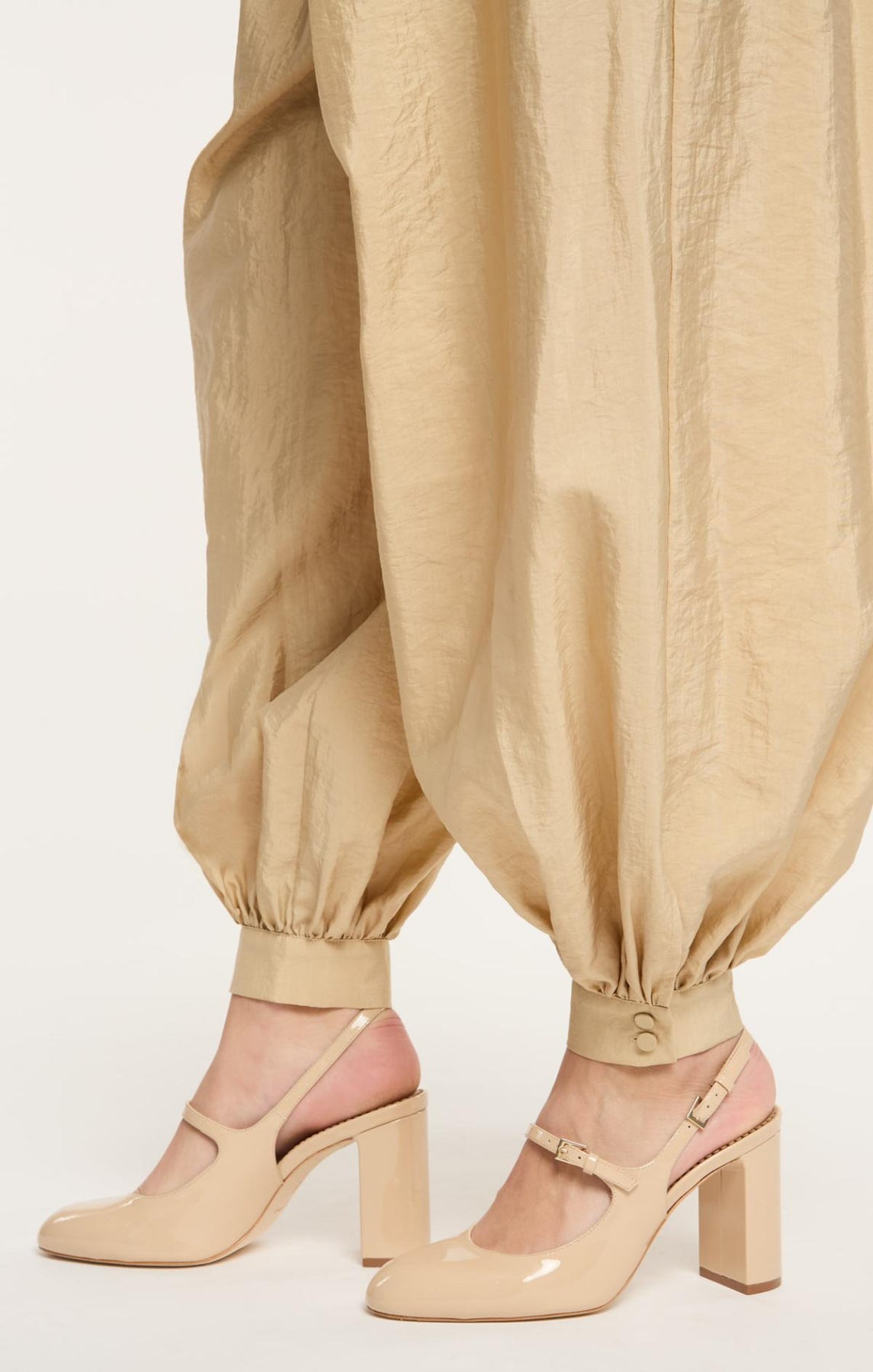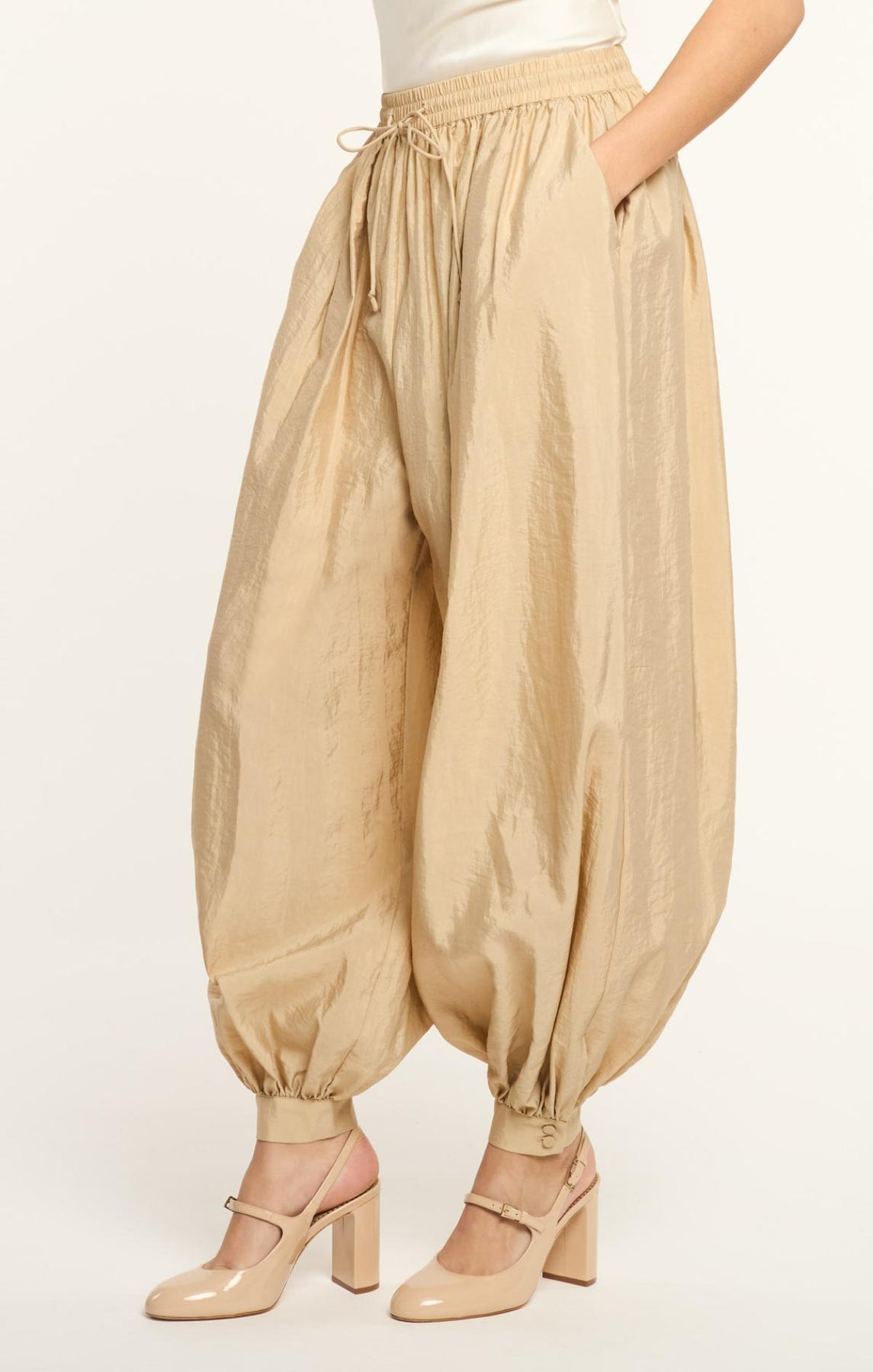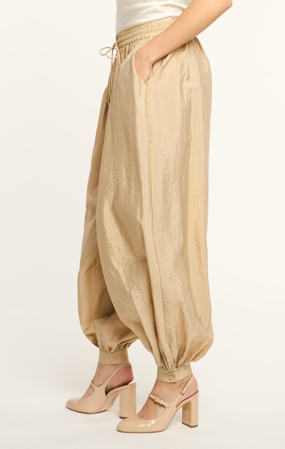 Discover a blend of relaxed comfort and refined style with the Tumbled Woven Verne Pant. This airy, flowy silhouette features a generous balloon cut that moves beautifully with you, while the self-tie waist and adjustable band provide a customized fit. Finished with subtle button ankle cuffs for a polished touch.