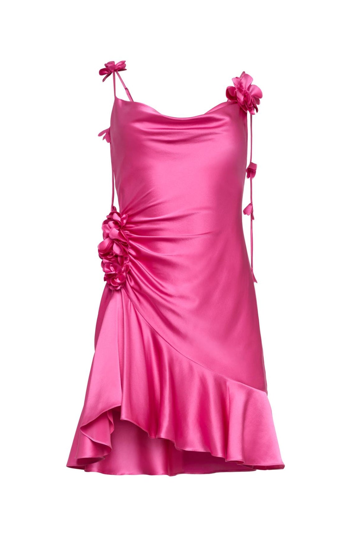The Ganessa Dress is your go-to mini for warm days filled with style. A graceful cowl neckline flows into ruched detailing adorned with fabric florals, while a slight high-low hem accented with a ruffled edge keeps things playful. Delicate vine-inspired designs trace the back, adding an unexpected artistic element.