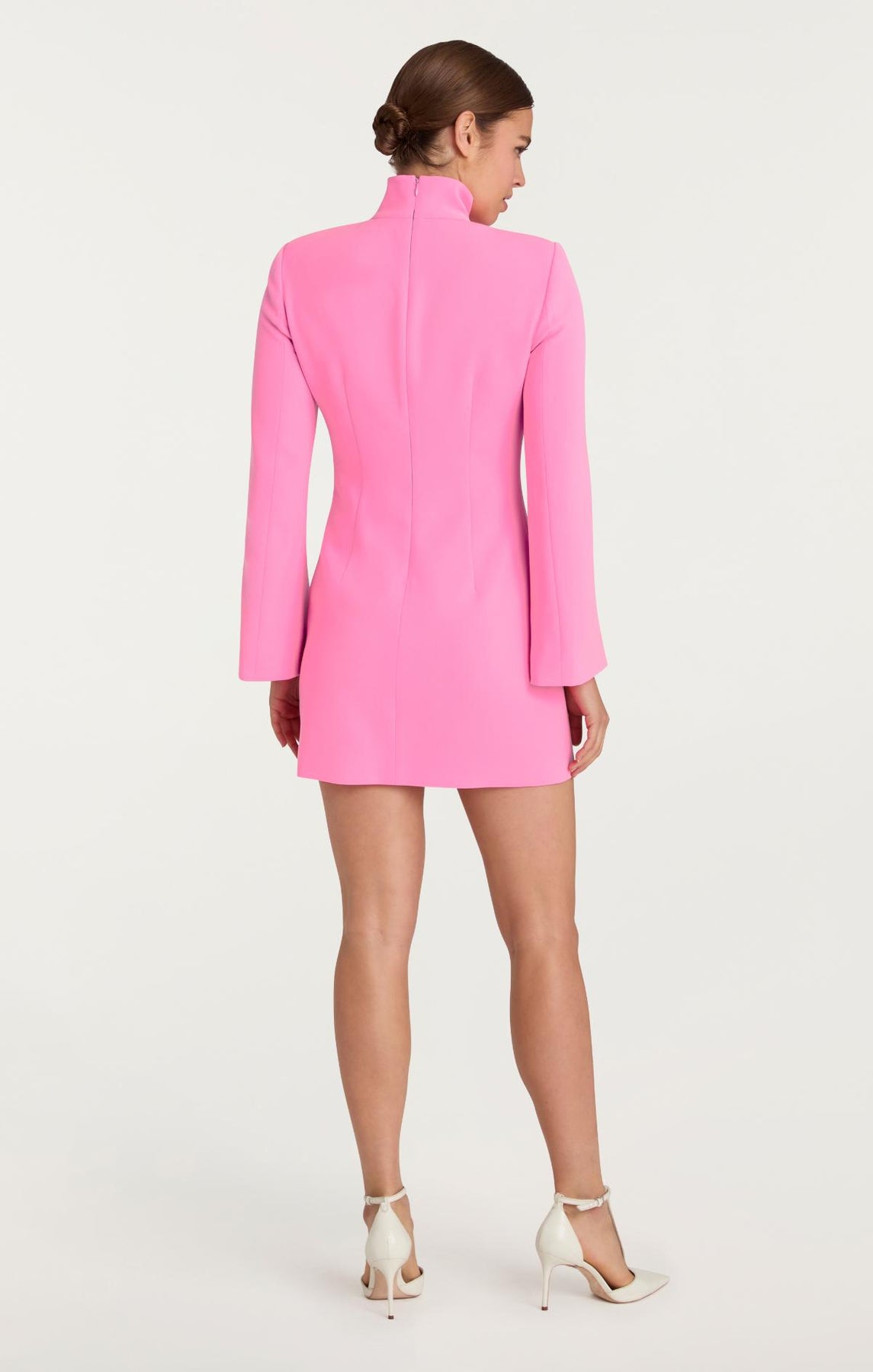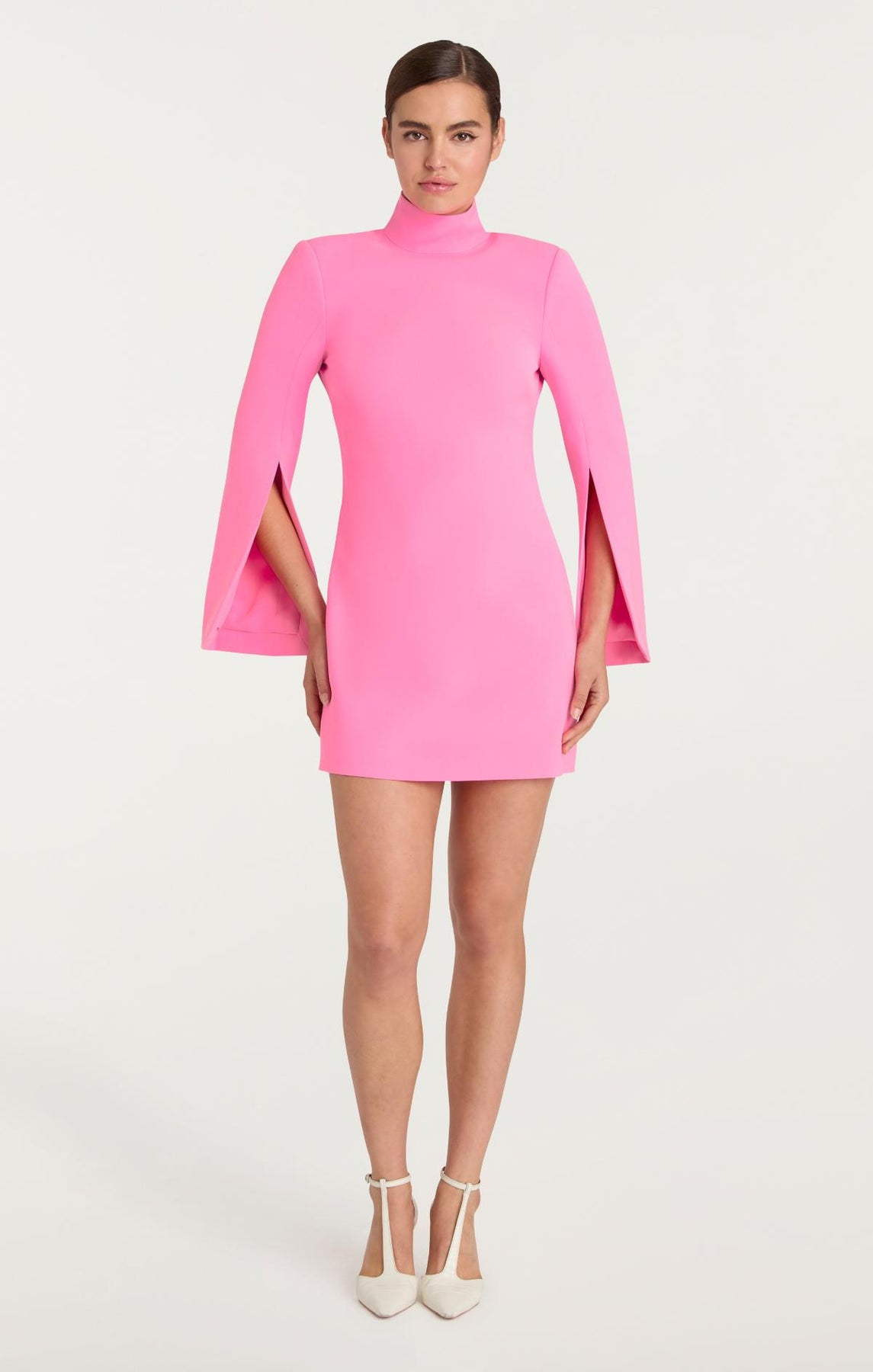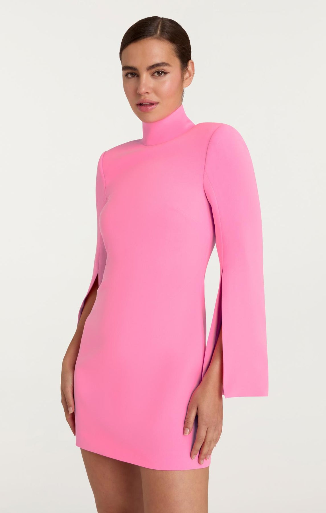Make a statement at your next event in the Randa Dress, where timeless sophistication meets modern design. This long sleeve mini dress showcases an elegant mock neck and eye-catching bell slit sleeves that deliver dynamic style and graceful movement. Designed for elevated events and cocktail moments, it pairs effortlessly with heels and bold accessories for a complete, polished look.