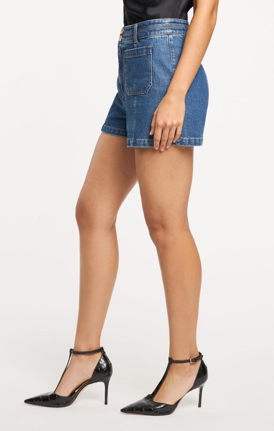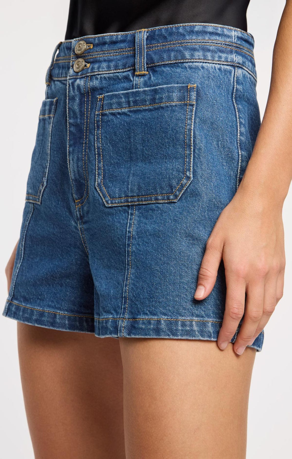 The Dorothea Jean Short brings timeless appeal to your sunny-day rotation. Designed with practical front patch pockets and a polished double-button closure, this denim short offers effortless sophistication for warm weather styling.