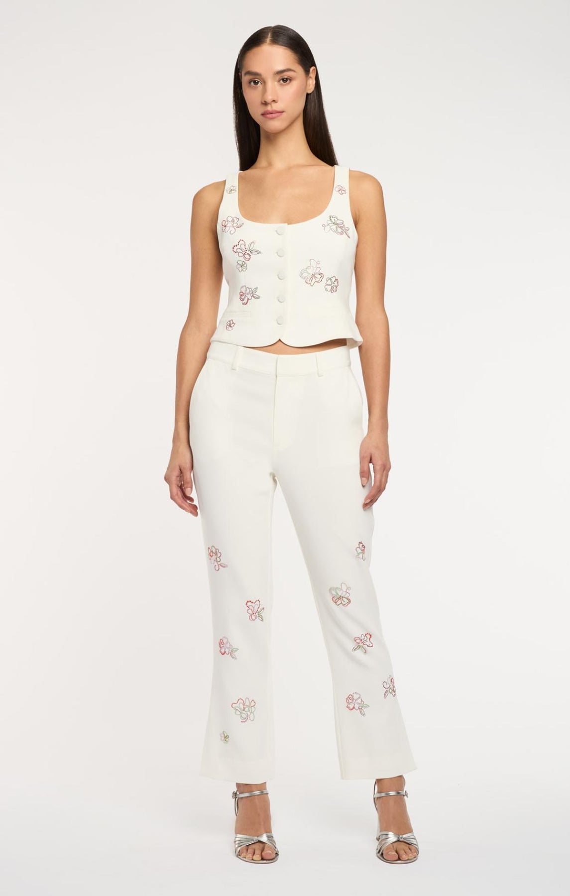 The Blooming Linework Rowena Top elevates your spring wardrobe with sophisticated style. This refined vest showcases a graceful scoop neckline and shimmering rhinestone floral embellishments that add dimension to any look. A polished piece that commands attention with understated elegance.