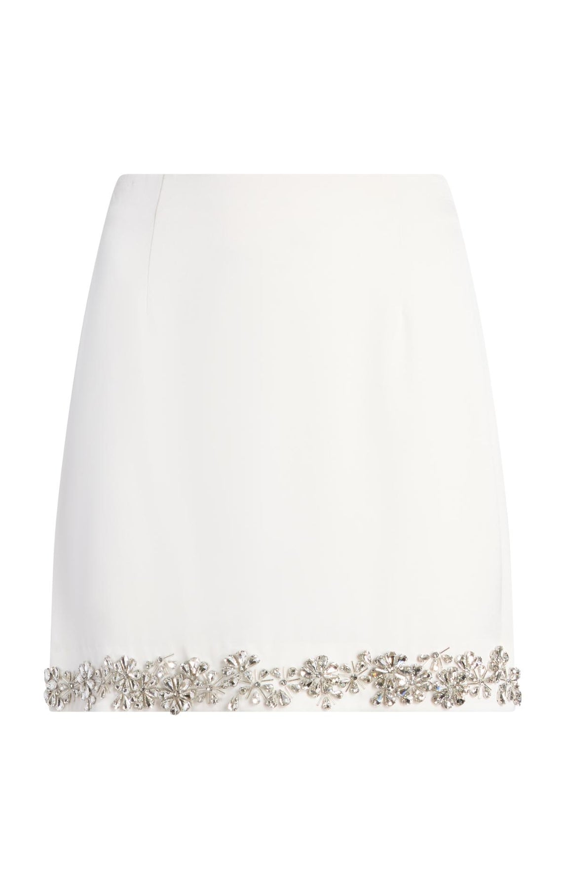 Elevate your evening with the Tumbling Flowers Adona Skirt, where florals meet a dazzling crystal-embellished hem. This mini cut captures the perfect blend of polish and allure for special occasions that deserve standout style.