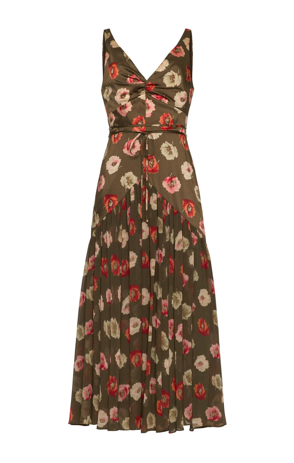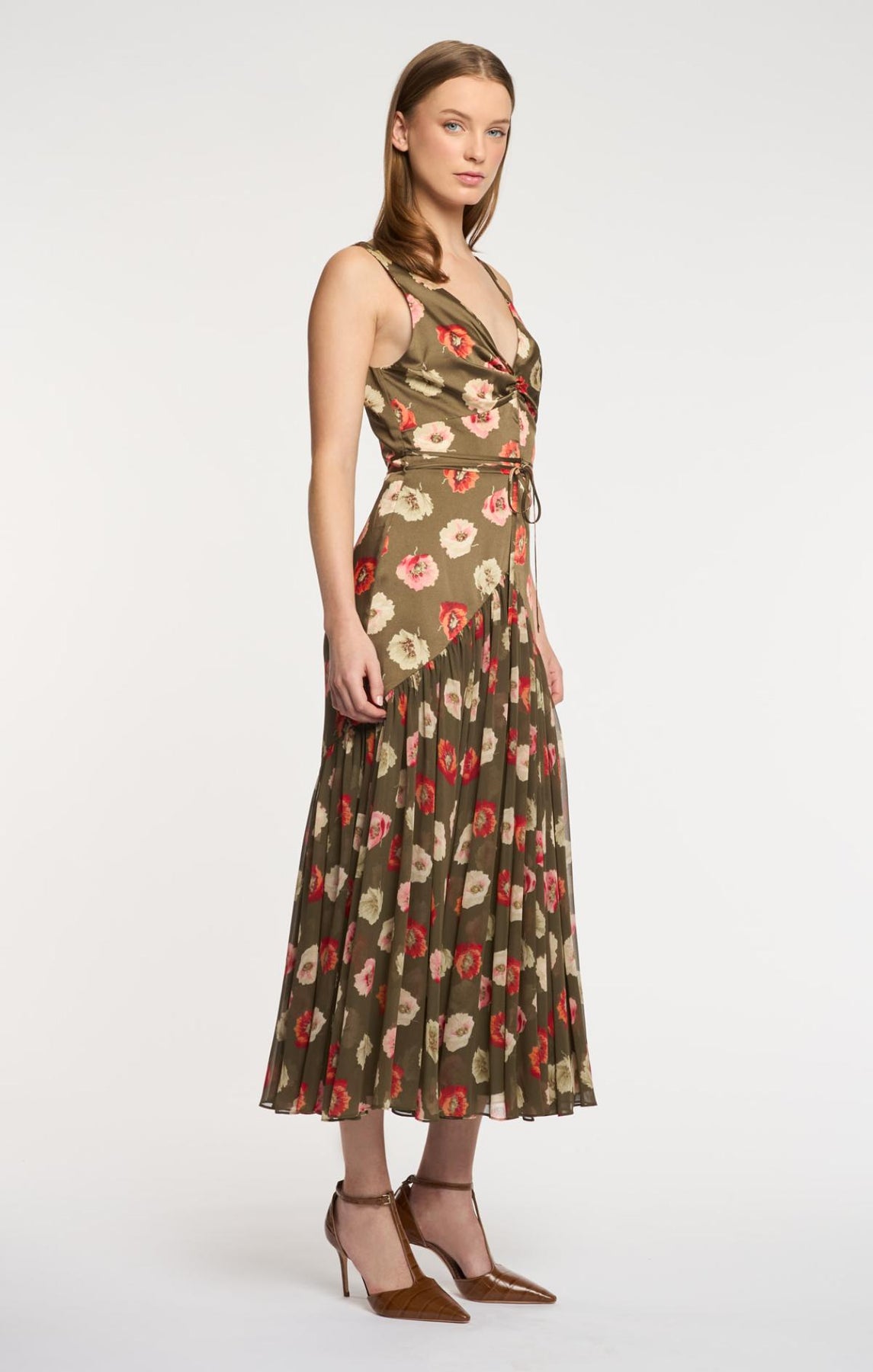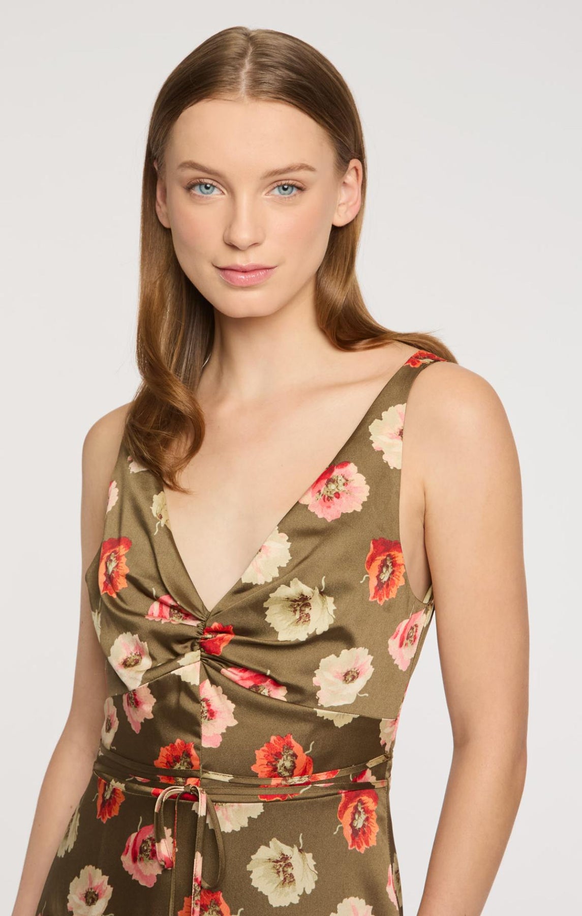Meet the Floating Poppies Makaila Dress, a midi designed for modern day time elegance. Featuring a delicate floral print, this dress combines a cinched tie waist with ruched chest detailing for a flattering fit.
