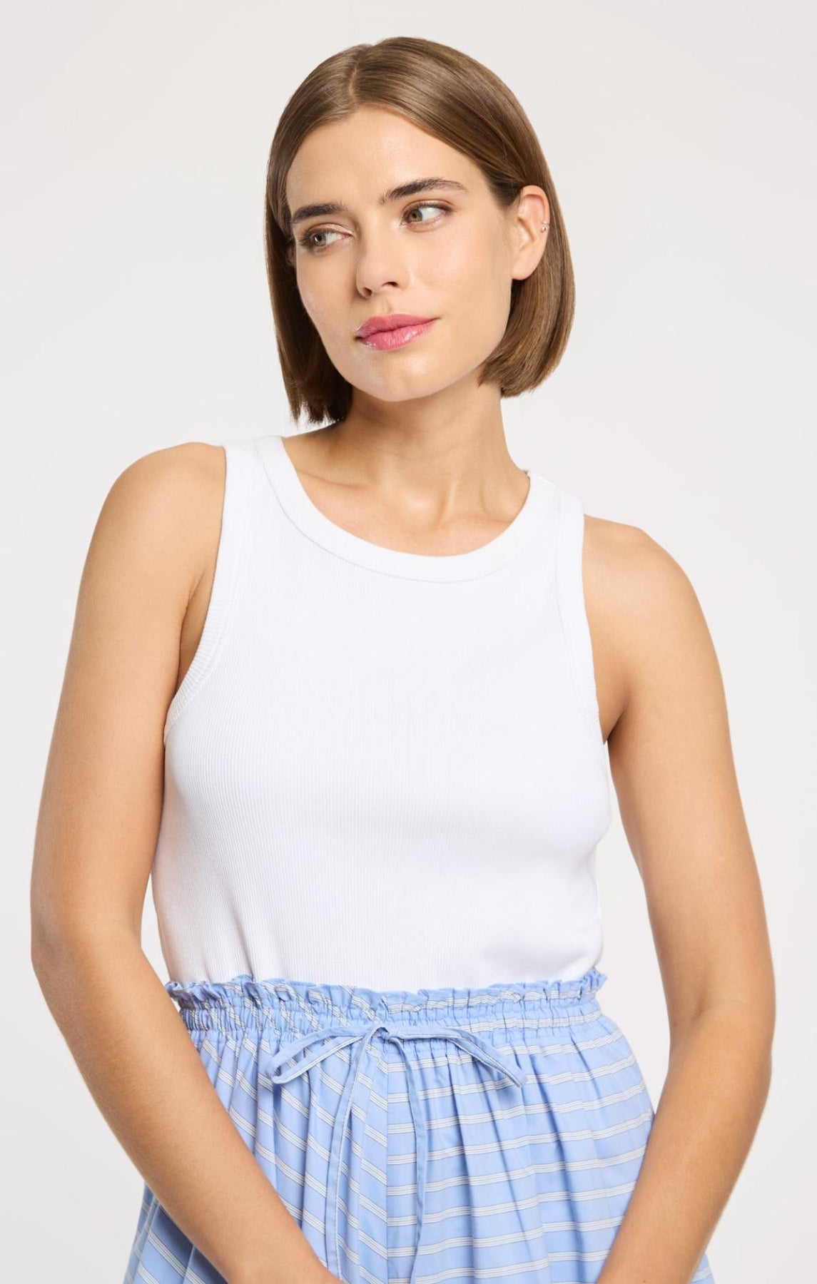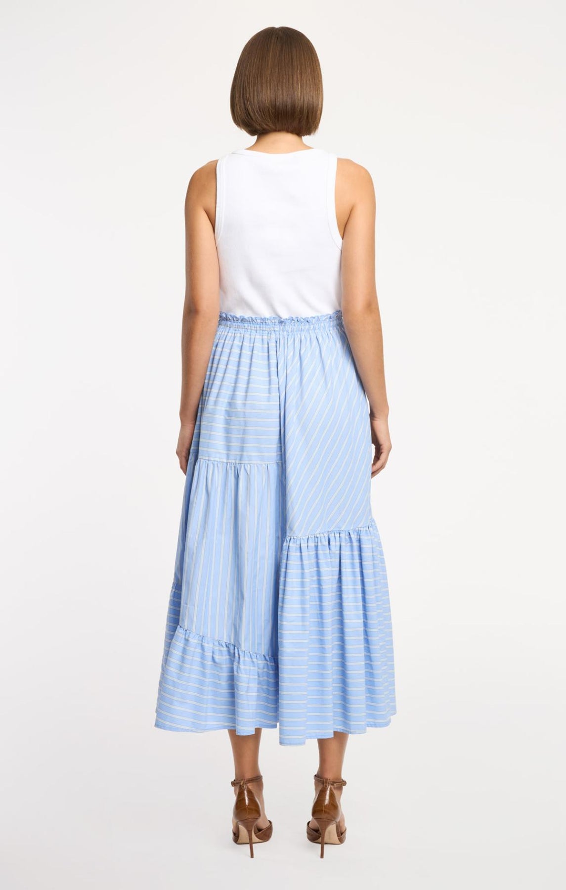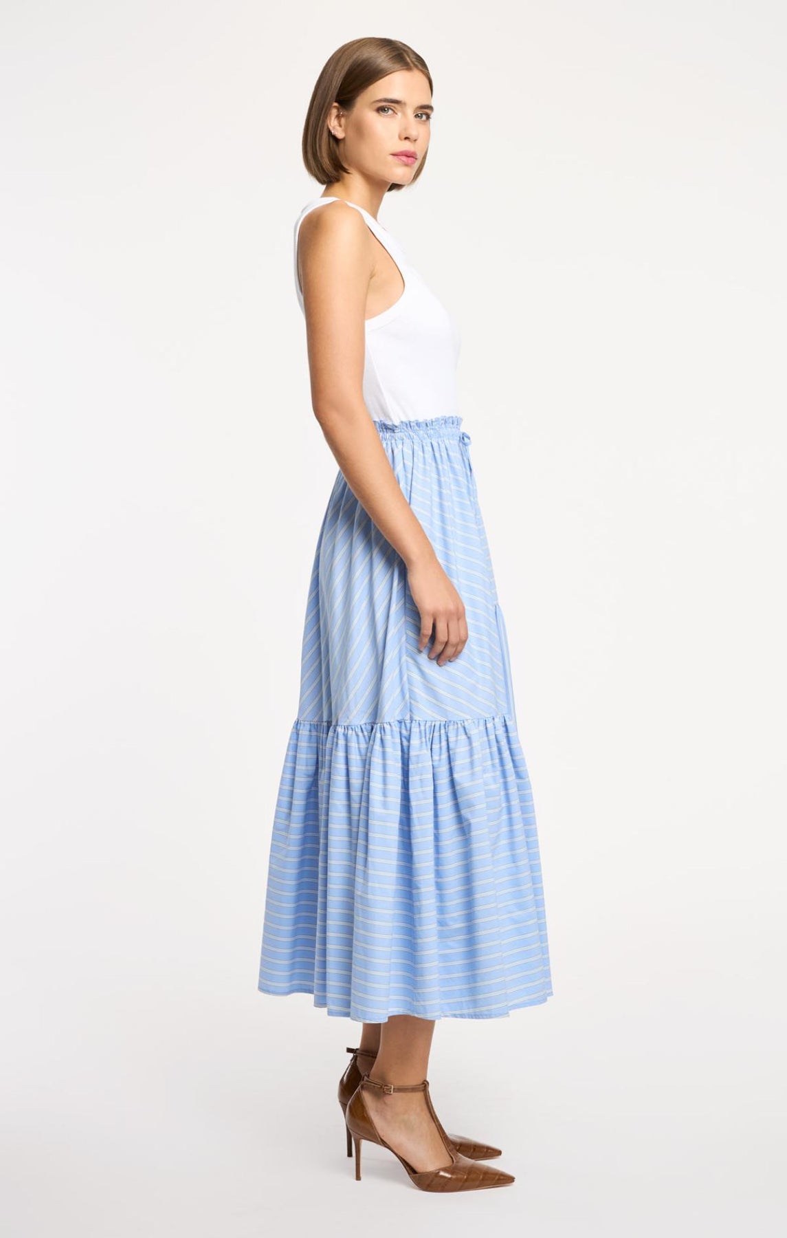 The Robyn Dress captures effortless spring style with its sleeveless midi silhouette and relaxed daytime appeal. A contrasting solid bodice meets a striped, flowing A-line skirt that sways with ease. The adjustable tie waist flatters your frame while the asymmetrical hem brings a contemporary edge. Perfect for casual spring days!