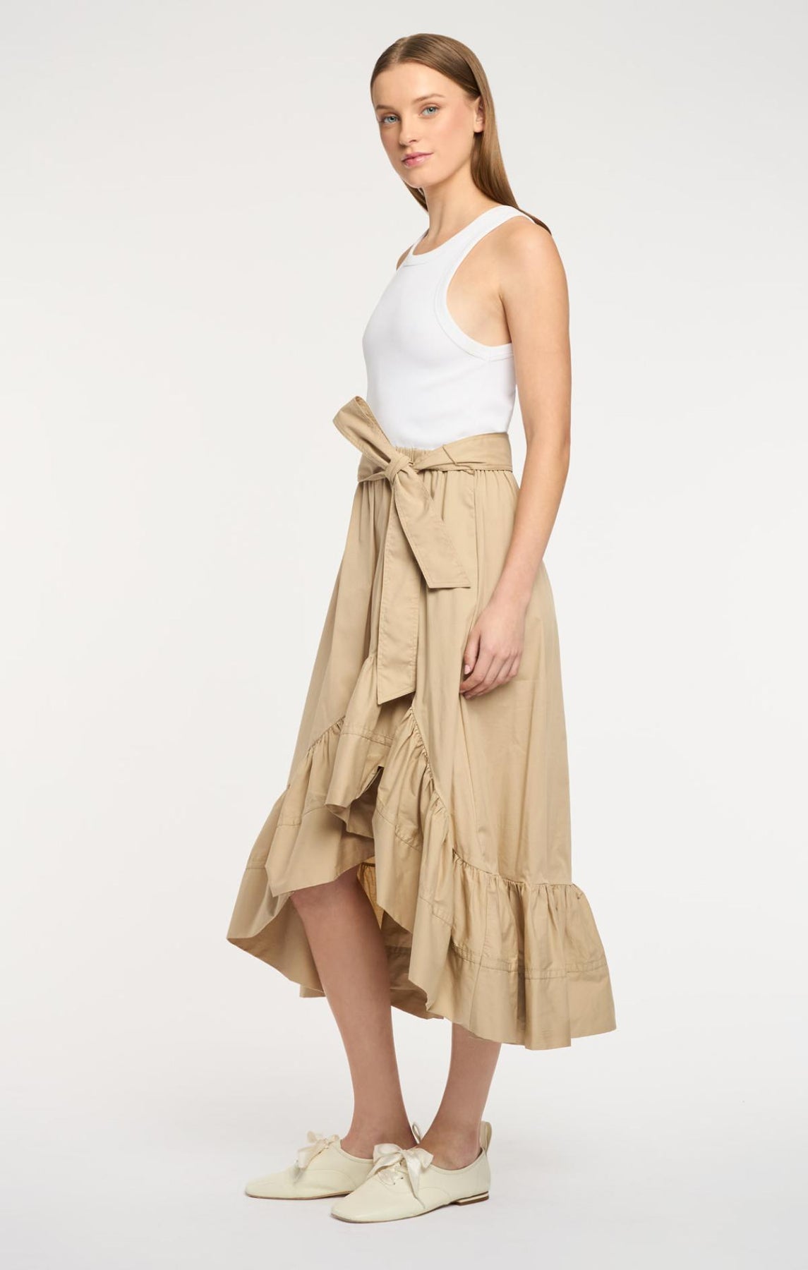 Ruffled high-low hem