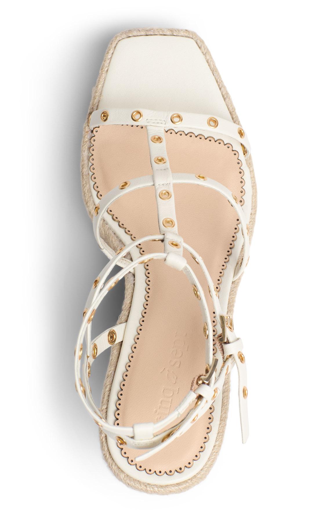 The Norah Grommet Espadrille Wedge delivers modern edge with practical comfort. Stacked T-Straps with metallic grommets create an eye-catching design. The wedge heel keeps you supported through the warm days ahead, making it a seasonal essential.