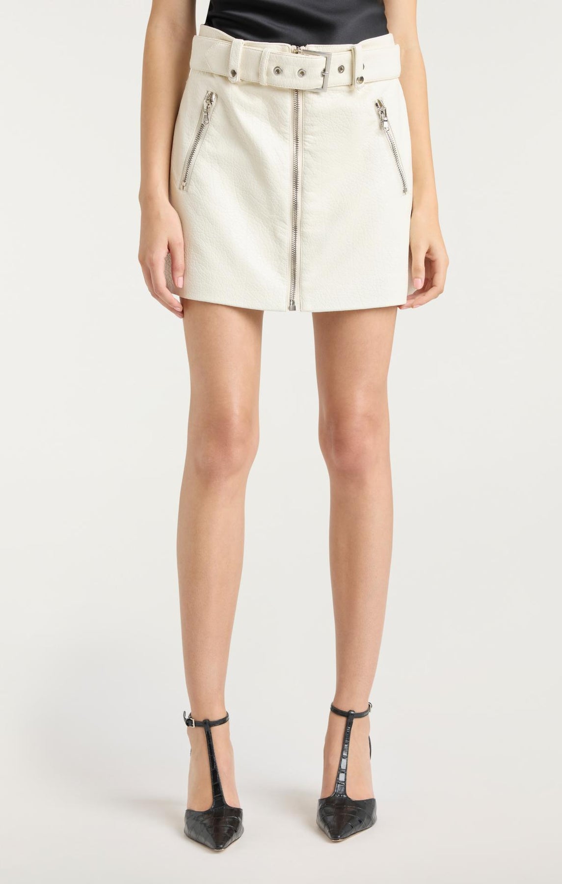 The Saffira Skirt presents a trendy mini silhouette featuring a practical zipper closure and a sleek belt detail. Designed to help you make a bold statement, it pairs seamlessly with your favorite basics for a refined, fashionable outfit.