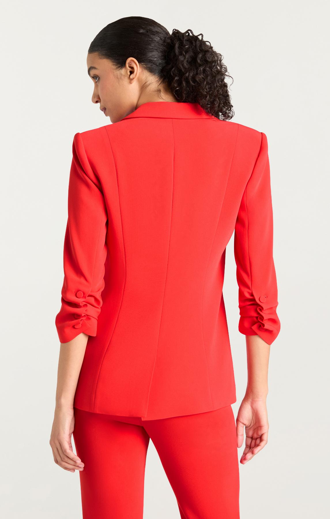 Look polished and professional in this Crepe Khloe Blazer. This expertly tailored piece features a collared neckline, notched lapels, and stylized sleeves for a look that is modernly classic. This pop of color will have you standing out with sophisticated style. Make a powerful statement with this must-have blazer.