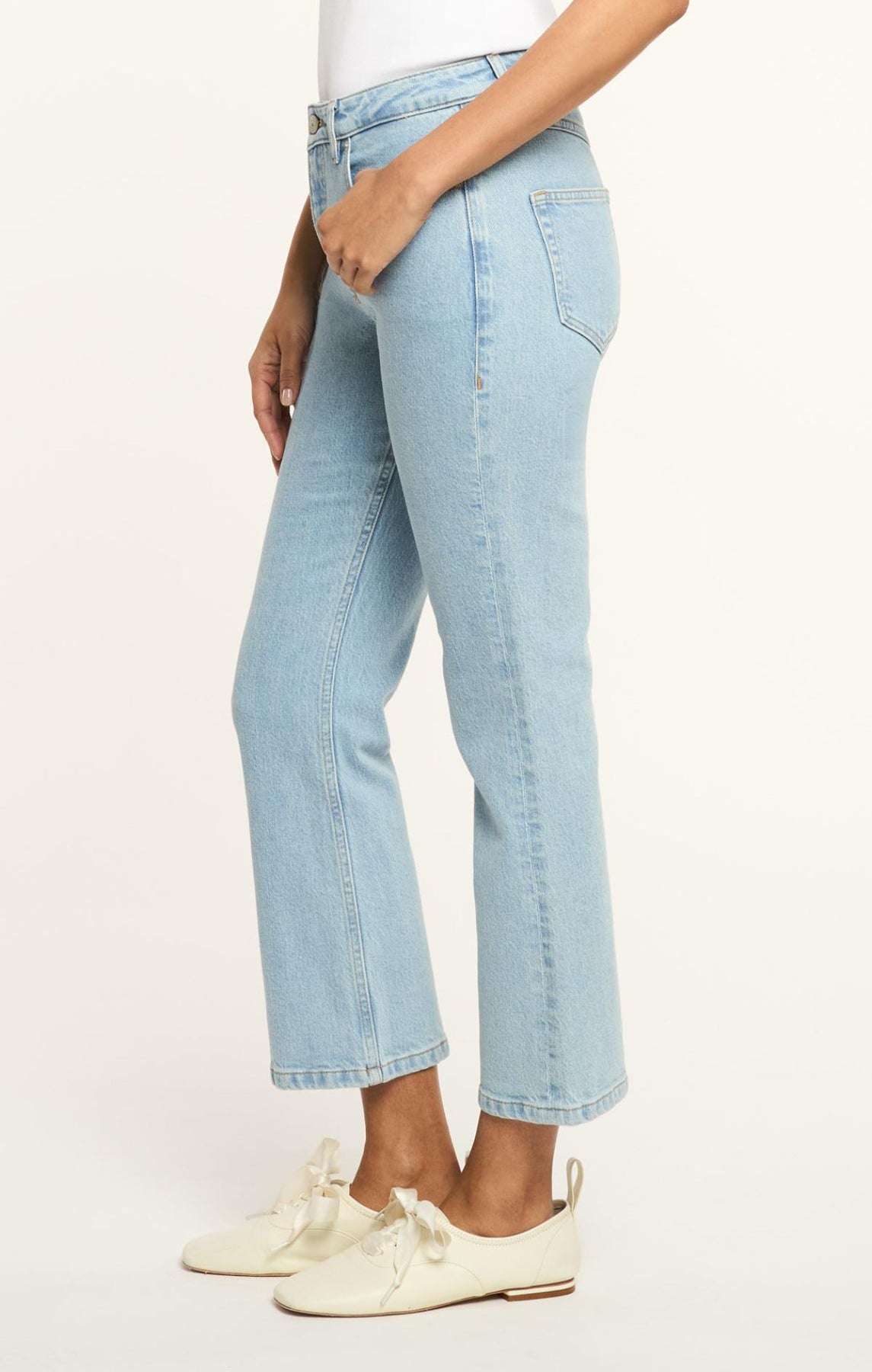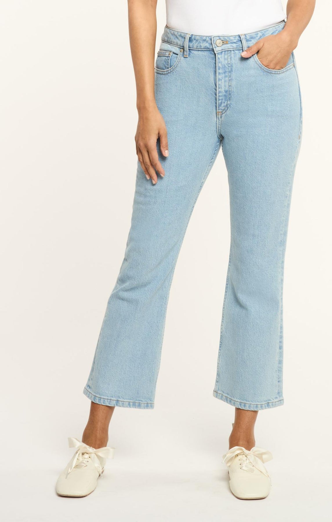 Effortless and versatile, these Cropped Stevie Jeans in a light wash denim are the perfect warm-weather staple. Featuring classic five-pocket styling and a flattering flared silhouette, they pair seamlessly with everything from tank tops to tailored jackets.