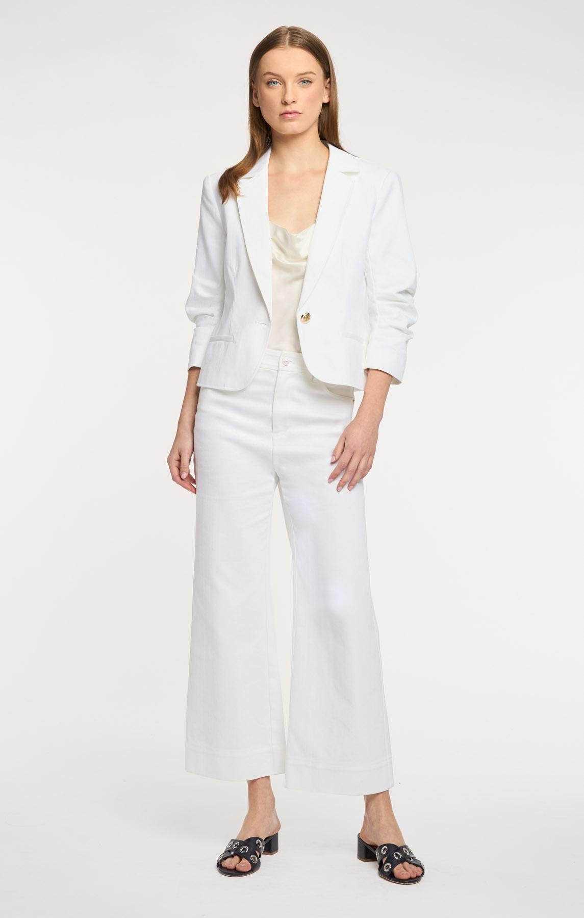 Elevate your outfits with the Le Petit Khloe Jean Blazer. This chic piece features a distinctive pre-styled sleeve and sharp collar-and-lapel design, secured with a button-front closure. A versatile essential for work, weekend plans, and beyond. It is the perfect basic that pairs with everything.